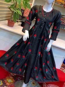 Elevate your wardrobe with this stunning Women’s Stitched Gown Suit Set crafted from luxurious Katan Silk. Featuring intricate embroidery, this 3-piece set includes a beautifully designed gown, a stylish inner shirt, and comfortable trousers. Perfect for any occasion, this ensemble combines sophistication with traditional charm in a striking black color.