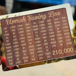 The Wooden Umrah Saving Box Is A Beautifully Crafted Money Box Made To Inspire And Support Your Spiritual Journey Toward Umrah. Designed With A 210,000 Saving Goal, It Encourages Consistent Saving Habits While Adding A Touch Of Elegance To Your Home. Made From High-Quality Wood, This Box Combines Durability With A Classic Islamic Design, Making It Both Functional And Decorative. Ideal For Personal Use, Family Savings, Or As A Thoughtful Gift, This Umrah Box Keeps You Motivated And Organized As You Prepare Financially For Your Sacred Pilgrimage.